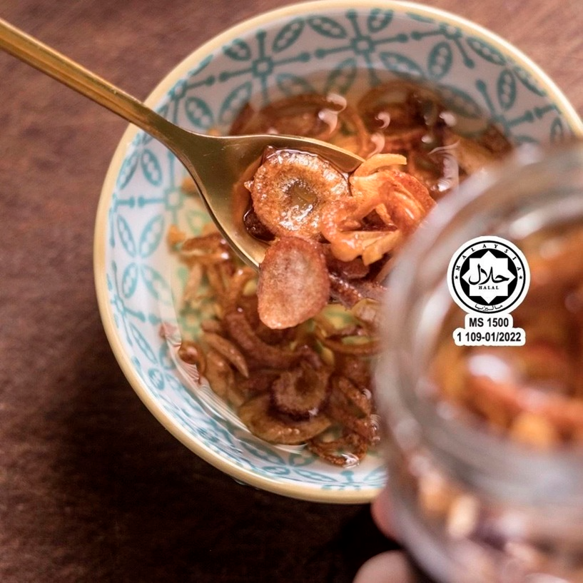 Dihasilkan daripada bawang sebenar yang digoreng perlahan hingga keemasan, lalu diserap ke dalam minyak beraroma untuk menaikkan rasa masakan secara ringkas dan semula jadi.