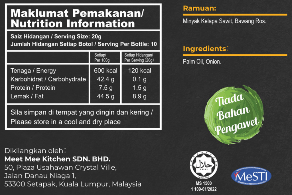 |HALAL|MEET MEE Fried Onion Oil | Minyak Bawang Goreng | Aromatic Onion Topping | 香脆洋葱油